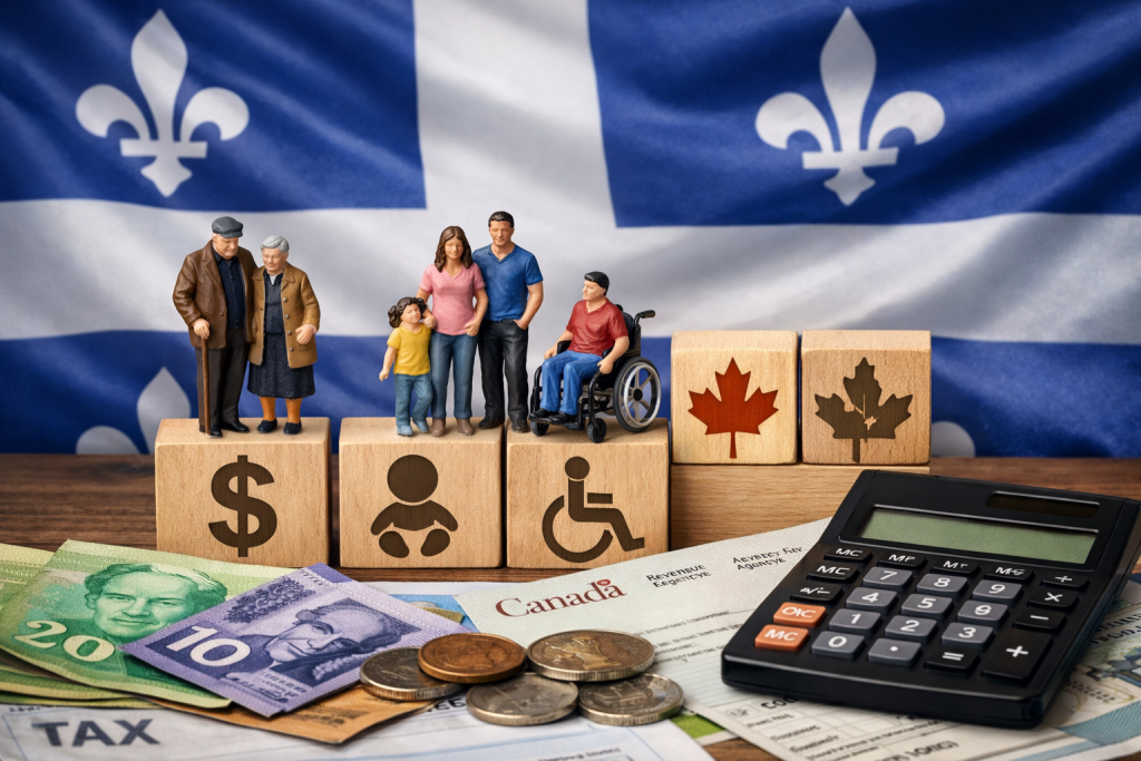 Στο Κεμπέκ, μια σειρά από τακτικές πληρωμές κοινωνικής και οικονομικής στήριξης προγραμματίζονται για τον μήνα Μάρτιο 2026 για πολίτες που πληρούν τα αντίστοιχα κριτήρια. Οι ημερομηνίες και τα είδη των παροχών καλύπτουν ένα ευρύ φάσμα ομάδων, από ηλικιωμένους συνταξιούχους και γονείς μέχρι άτομα με αναπηρία και οικογένειες με παιδιά.