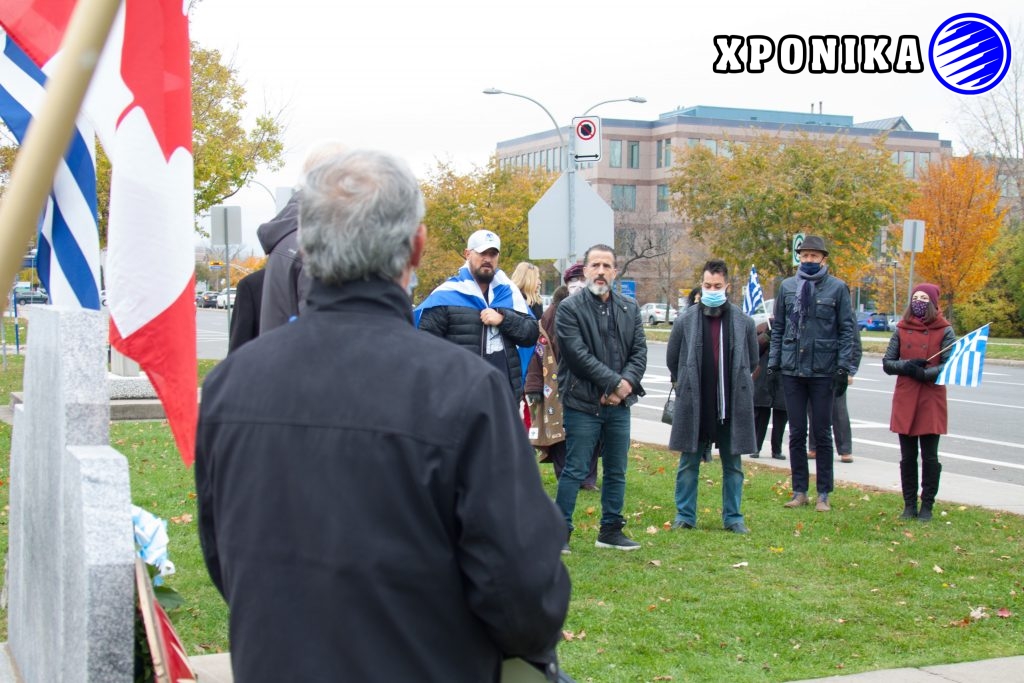 Αν και ο καιρός δεν βοήθησε, με αρκετό κρύο δεκάδες ομογενείς της ευρύτερης περιοχής του Μόντρεαλ ήταν παρόντες εις μνήμη των ηρώων που έδωσαν τη ζωή τους για μια ελεύθερη Ελλάδα.