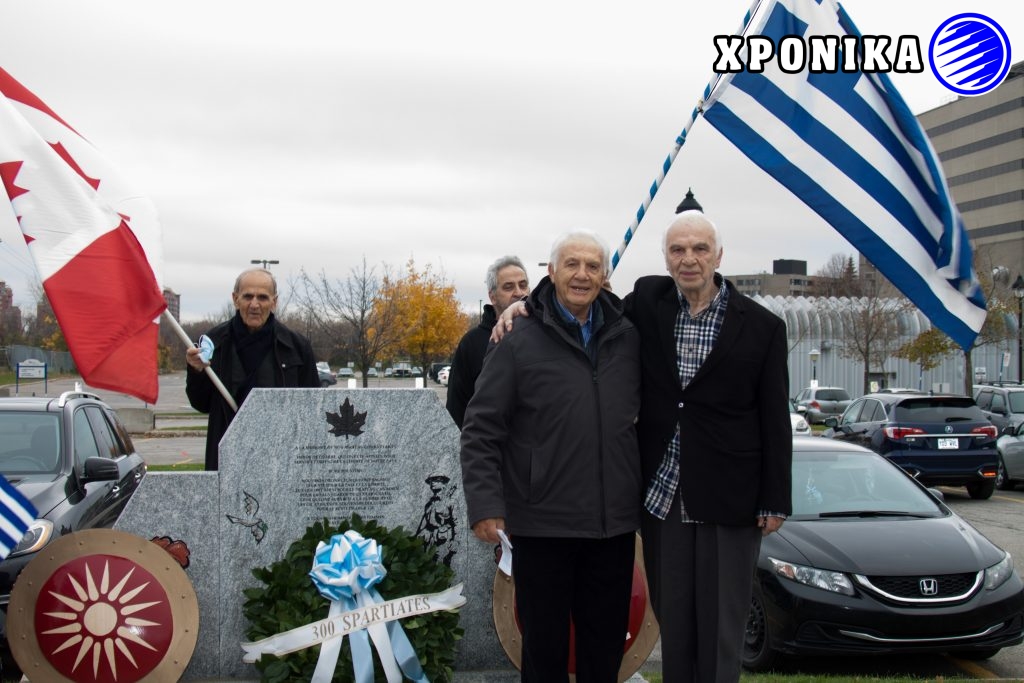 Κατατέθηκε στεφάνι από τον πρόεδρο του συλλόγου “300 Σπαρτιάτες” του Μόντρεαλ, κ. Βρασίδα Γιαννόπουλο, παρουσία του Ελληνοκαναδικού Κογκρέσου, που εκπροσωπούσε ο Δρ. Κώστας Πάππας.